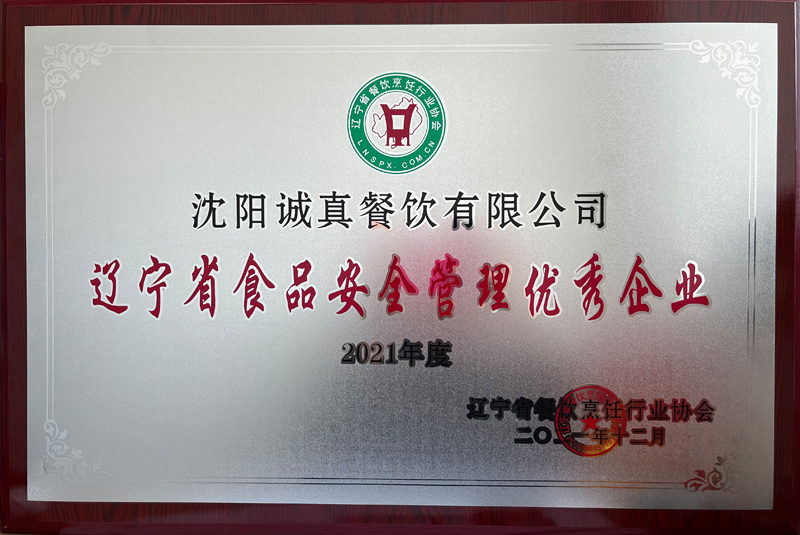 辽宁省食品安全管理优秀企业